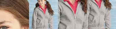 - Raw edge seams around hood opening, pocket seams, cuffs, waistband, and 1/4 zip placket