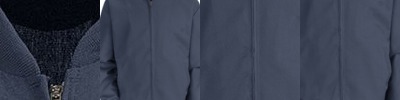 - Raw edge seams around hood opening, pocket seams, cuffs, waistband and side seams