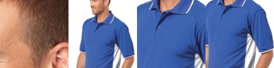 - Contrast color striped sleeves, collar, buttons and inside placket