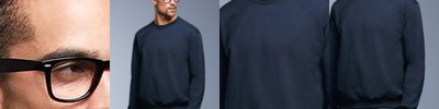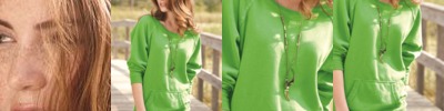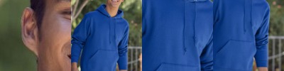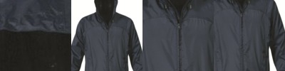 - Raw edge seams on raglan shoulders, side gusset panels, pocket and waistband